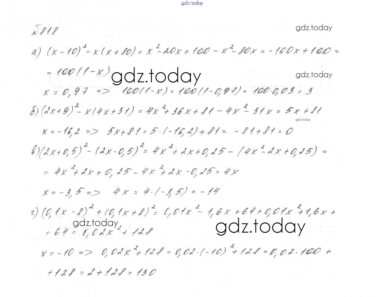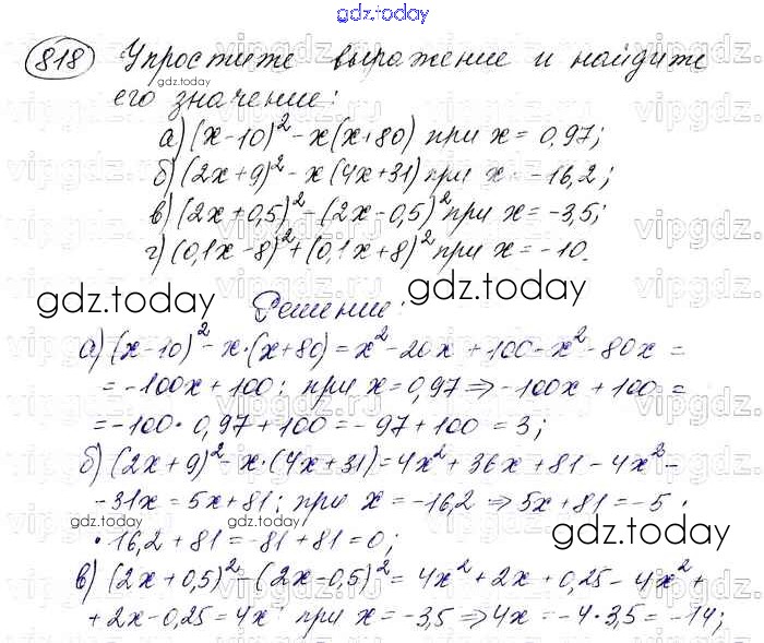 На страницах сайта gdz.today вы найдете учебный и вспомогательный материал, направленный на улучшения знаний школьной программы. ГДЗ - онлайн мир знаний Решение. Упражнения 818 Учебнику по Алгебре для 7 класса Макарычев, Миндюк Просвещение 2015