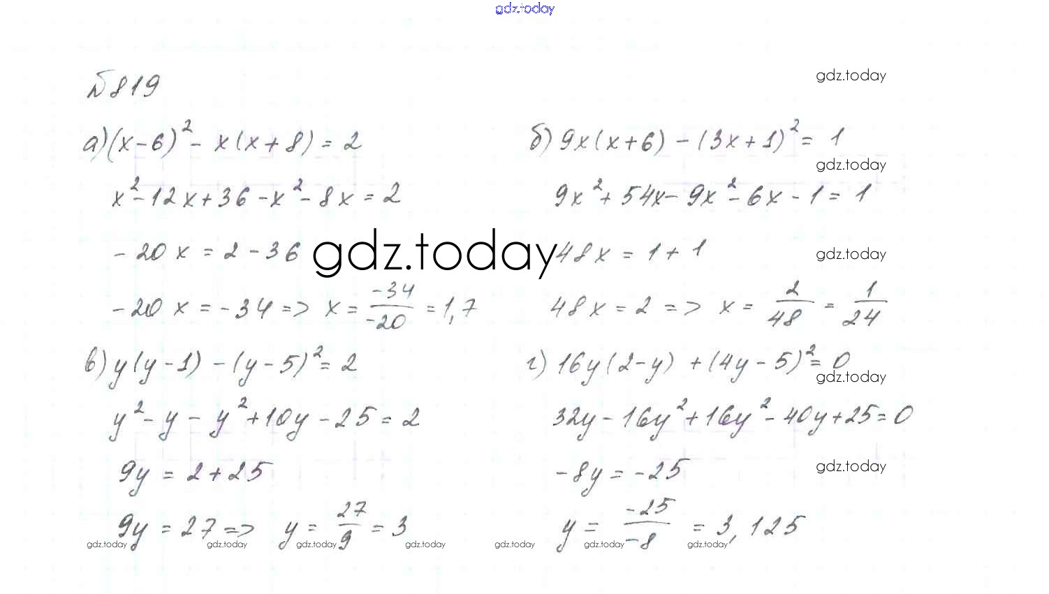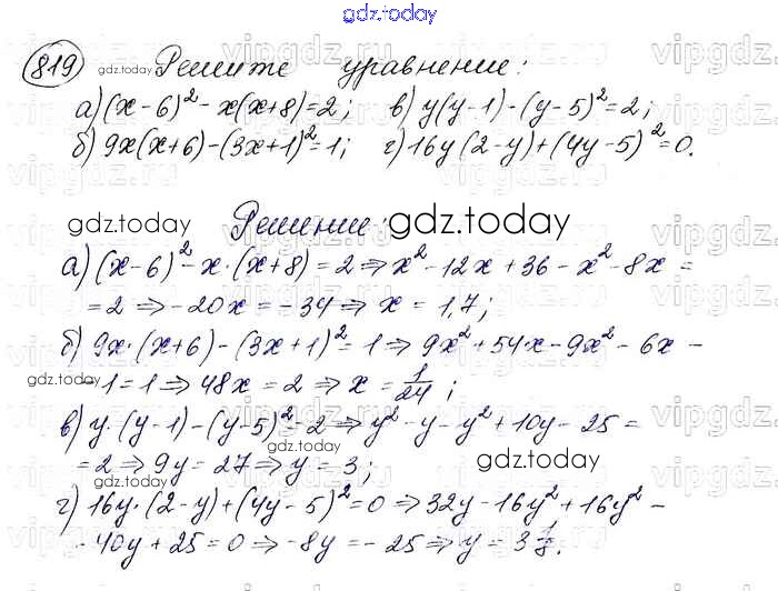 На страницах сайта gdz.today вы найдете учебный и вспомогательный материал, направленный на улучшения знаний школьной программы. ГДЗ - онлайн мир знаний Решение. Упражнения 819 Учебнику по Алгебре для 7 класса Макарычев, Миндюк Просвещение 2015