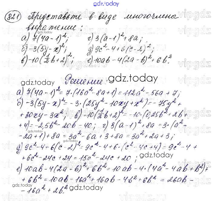 На страницах сайта gdz.today вы найдете учебный и вспомогательный материал, направленный на улучшения знаний школьной программы. ГДЗ - онлайн мир знаний Решение. Упражнения 821 Учебнику по Алгебре для 7 класса Макарычев, Миндюк Просвещение 2015