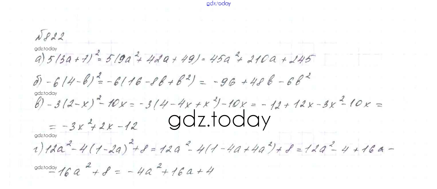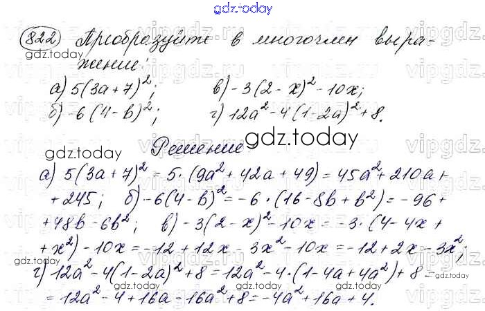 На страницах сайта gdz.today вы найдете учебный и вспомогательный материал, направленный на улучшения знаний школьной программы. ГДЗ - онлайн мир знаний Решение. Упражнения 822 Учебнику по Алгебре для 7 класса Макарычев, Миндюк Просвещение 2015