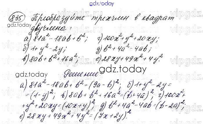 На страницах сайта gdz.today вы найдете учебный и вспомогательный материал, направленный на улучшения знаний школьной программы. ГДЗ - онлайн мир знаний Решение. Упражнения 835 Учебнику по Алгебре для 7 класса Макарычев, Миндюк Просвещение 2015