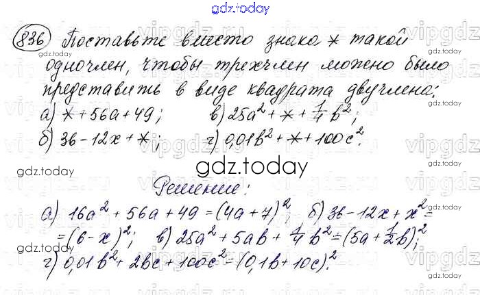 На страницах сайта gdz.today вы найдете учебный и вспомогательный материал, направленный на улучшения знаний школьной программы. ГДЗ - онлайн мир знаний Решение. Упражнения 836 Учебнику по Алгебре для 7 класса Макарычев, Миндюк Просвещение 2015