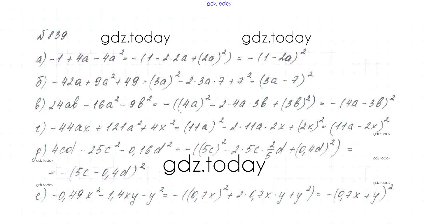 На страницах сайта gdz.today вы найдете учебный и вспомогательный материал, направленный на улучшения знаний школьной программы. ГДЗ - онлайн мир знаний Решение. Упражнения 839 Учебнику по Алгебре для 7 класса Макарычев, Миндюк Просвещение 2015