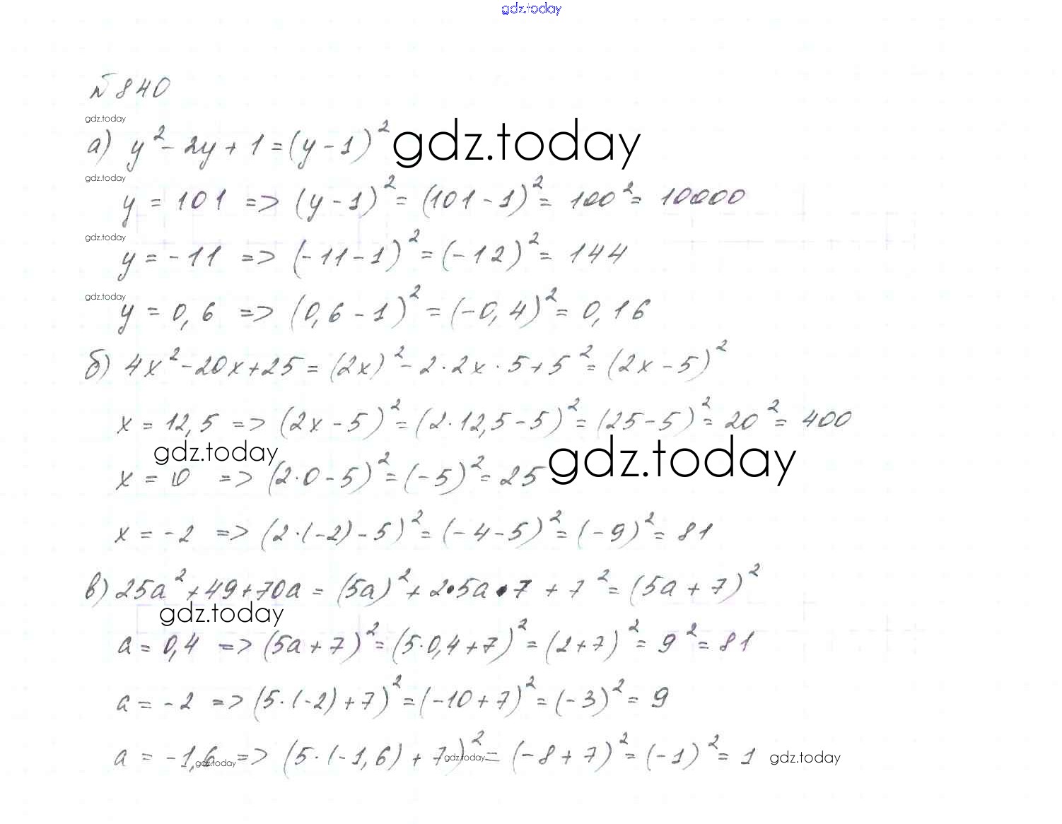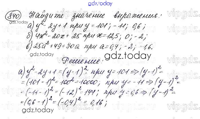 На страницах сайта gdz.today вы найдете учебный и вспомогательный материал, направленный на улучшения знаний школьной программы. ГДЗ - онлайн мир знаний Решение. Упражнения 840 Учебнику по Алгебре для 7 класса Макарычев, Миндюк Просвещение 2015