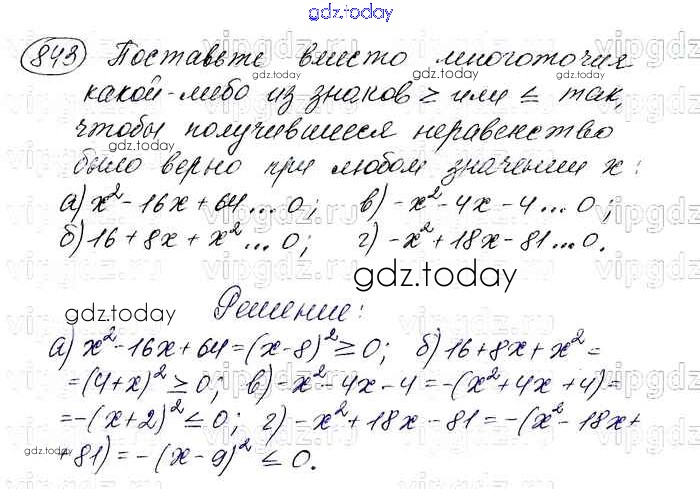 На страницах сайта gdz.today вы найдете учебный и вспомогательный материал, направленный на улучшения знаний школьной программы. ГДЗ - онлайн мир знаний Решение. Упражнения 843 Учебнику по Алгебре для 7 класса Макарычев, Миндюк Просвещение 2015