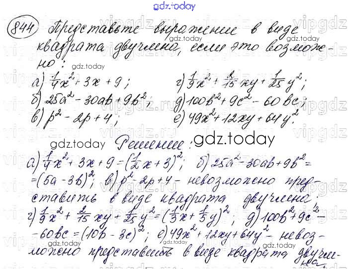 На страницах сайта gdz.today вы найдете учебный и вспомогательный материал, направленный на улучшения знаний школьной программы. ГДЗ - онлайн мир знаний Решение. Упражнения 844 Учебнику по Алгебре для 7 класса Макарычев, Миндюк Просвещение 2015