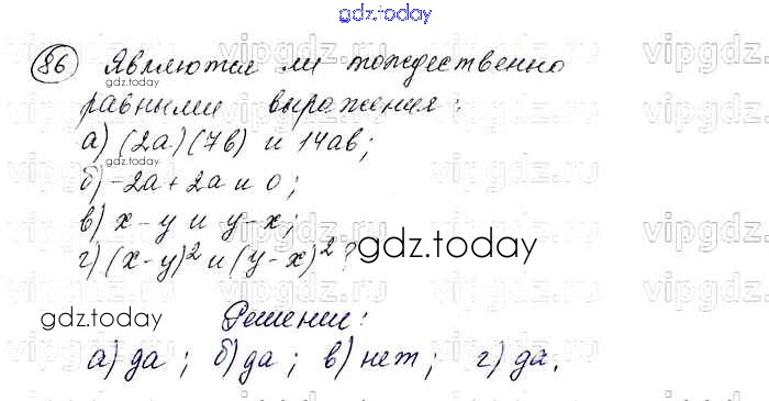 На страницах сайта gdz.today вы найдете учебный и вспомогательный материал, направленный на улучшения знаний школьной программы. ГДЗ - онлайн мир знаний Решение. Упражнения 86 Учебнику по Алгебре для 7 класса Макарычев, Миндюк Просвещение 2015