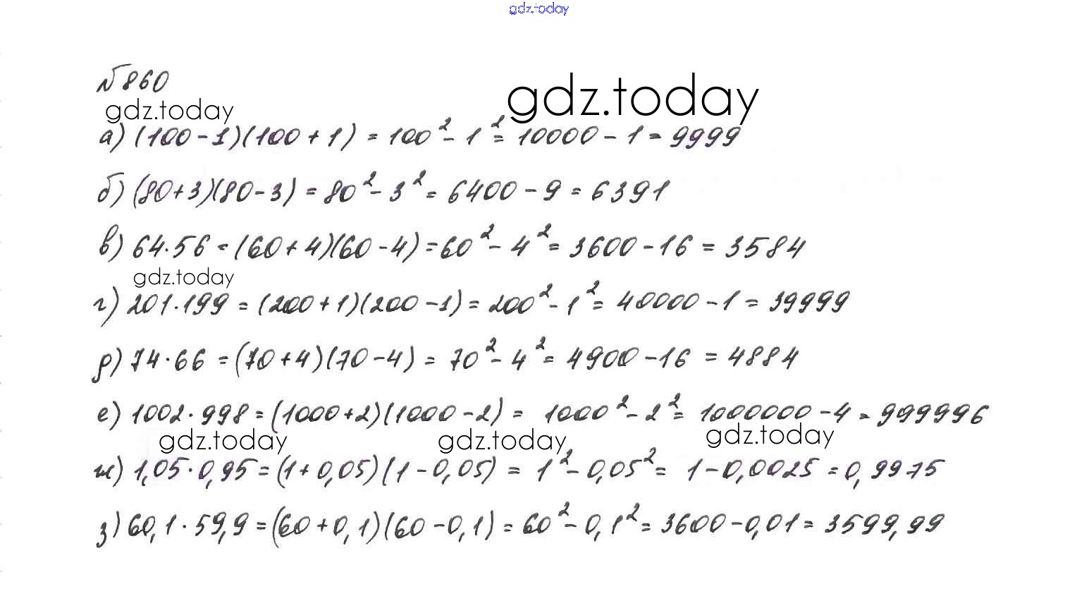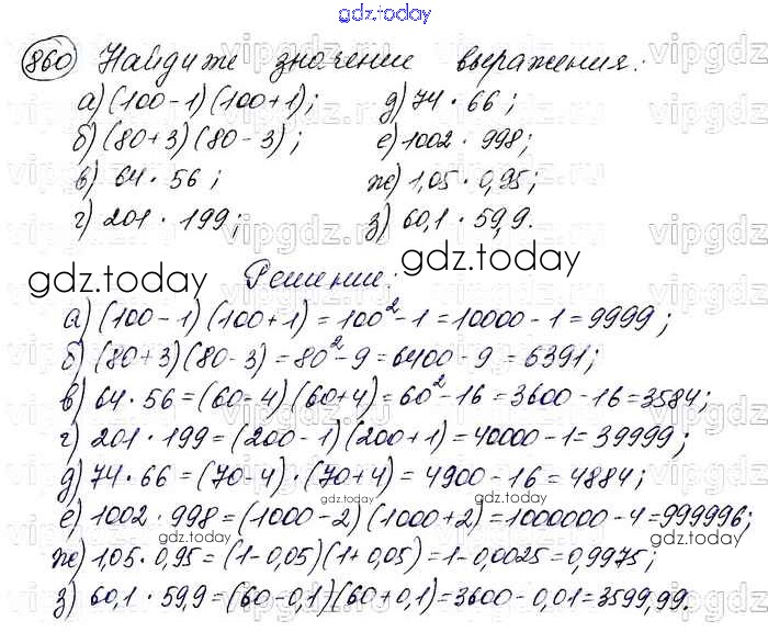 На страницах сайта gdz.today вы найдете учебный и вспомогательный материал, направленный на улучшения знаний школьной программы. ГДЗ - онлайн мир знаний Решение. Упражнения 860 Учебнику по Алгебре для 7 класса Макарычев, Миндюк Просвещение 2015