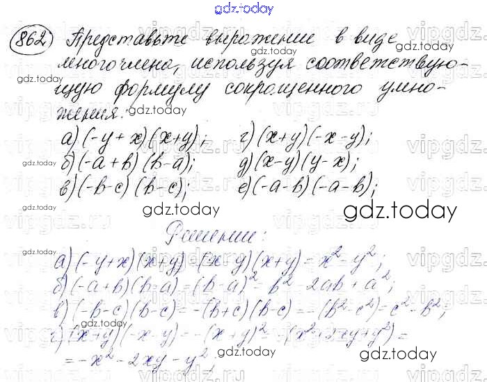 На страницах сайта gdz.today вы найдете учебный и вспомогательный материал, направленный на улучшения знаний школьной программы. ГДЗ - онлайн мир знаний Решение. Упражнения 862 Учебнику по Алгебре для 7 класса Макарычев, Миндюк Просвещение 2015