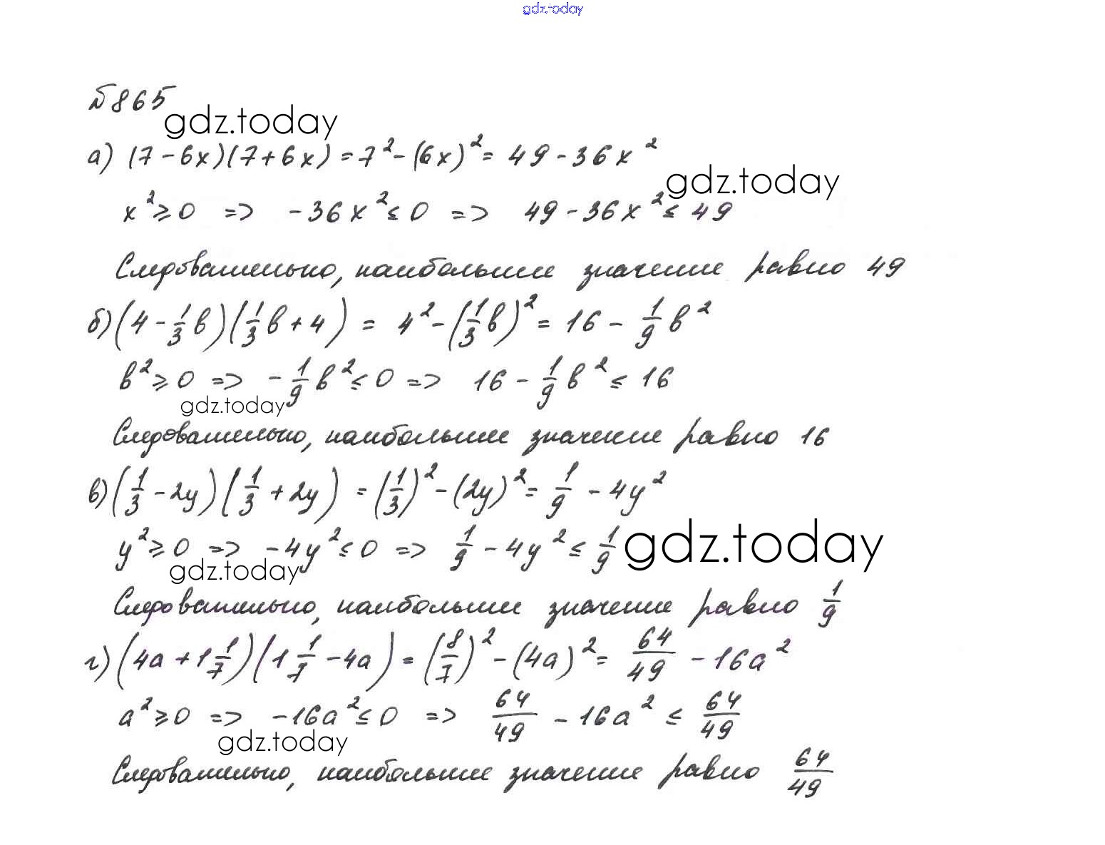 На страницах сайта gdz.today вы найдете учебный и вспомогательный материал, направленный на улучшения знаний школьной программы. ГДЗ - онлайн мир знаний Решение. Упражнения 865 Учебнику по Алгебре для 7 класса Макарычев, Миндюк Просвещение 2015
