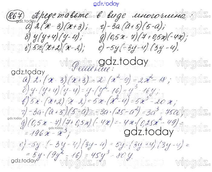 На страницах сайта gdz.today вы найдете учебный и вспомогательный материал, направленный на улучшения знаний школьной программы. ГДЗ - онлайн мир знаний Решение. Упражнения 867 Учебнику по Алгебре для 7 класса Макарычев, Миндюк Просвещение 2015