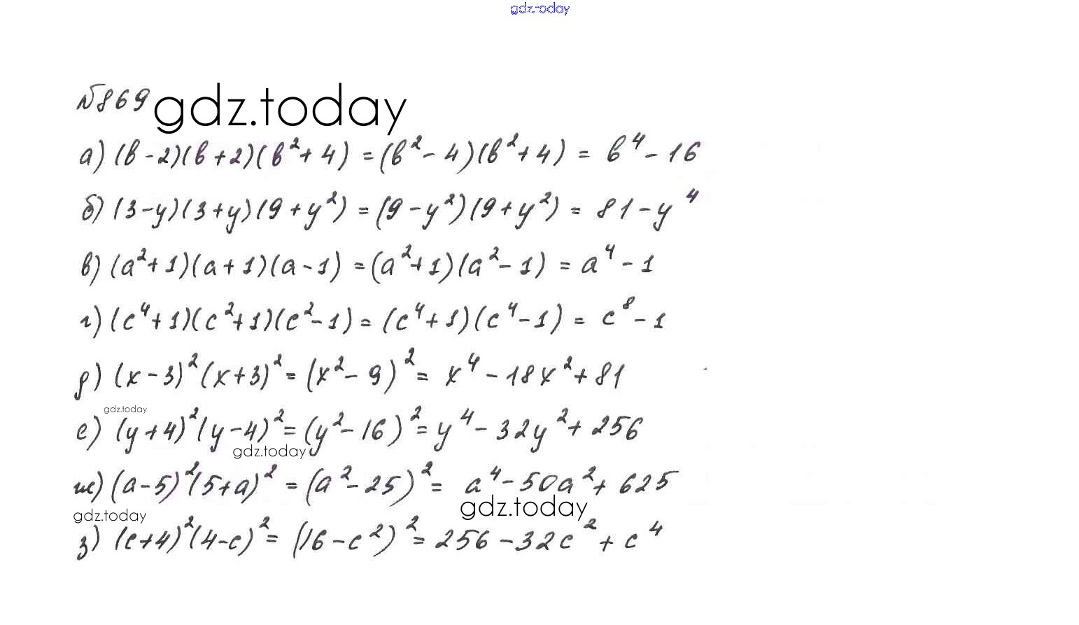 На страницах сайта gdz.today вы найдете учебный и вспомогательный материал, направленный на улучшения знаний школьной программы. ГДЗ - онлайн мир знаний Решение. Упражнения 869 Учебнику по Алгебре для 7 класса Макарычев, Миндюк Просвещение 2015