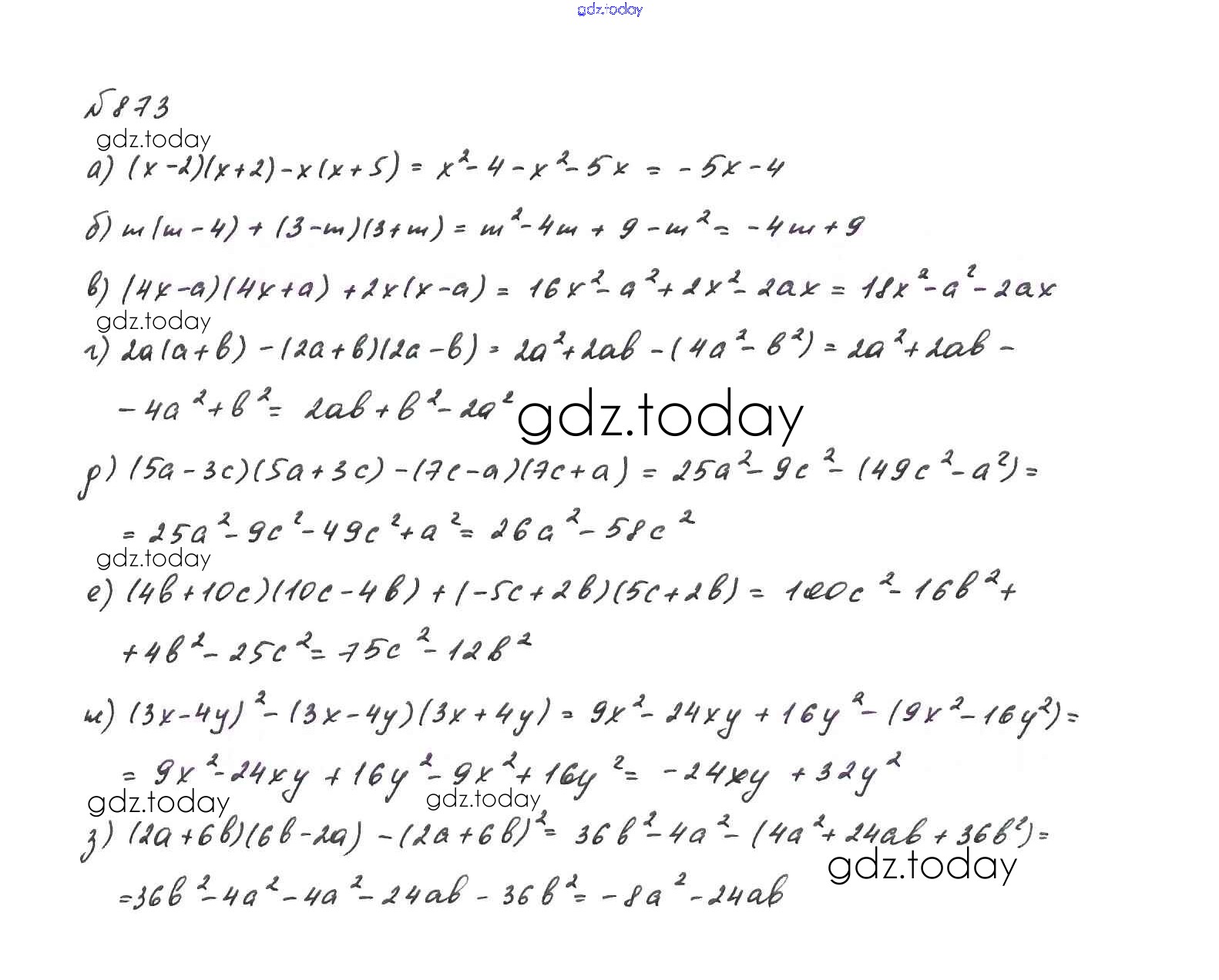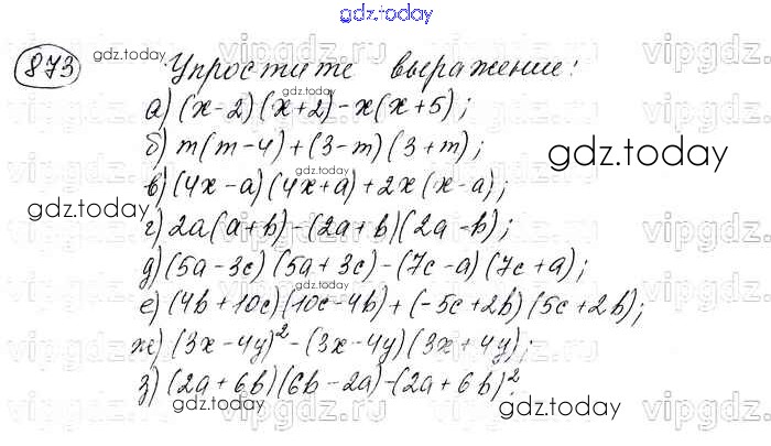 На страницах сайта gdz.today вы найдете учебный и вспомогательный материал, направленный на улучшения знаний школьной программы. ГДЗ - онлайн мир знаний Решение. Упражнения 873 Учебнику по Алгебре для 7 класса Макарычев, Миндюк Просвещение 2015