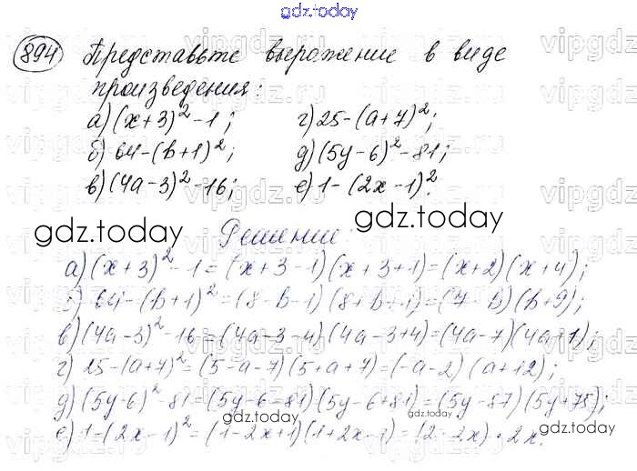 На страницах сайта gdz.today вы найдете учебный и вспомогательный материал, направленный на улучшения знаний школьной программы. ГДЗ - онлайн мир знаний Решение. Упражнения 894 Учебнику по Алгебре для 7 класса Макарычев, Миндюк Просвещение 2015