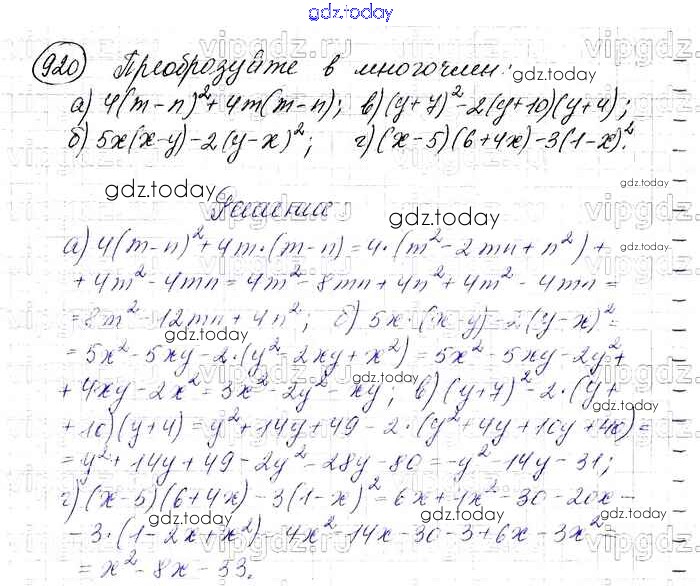 На страницах сайта gdz.today вы найдете учебный и вспомогательный материал, направленный на улучшения знаний школьной программы. ГДЗ - онлайн мир знаний Решение. Упражнения 920 Учебнику по Алгебре для 7 класса Макарычев, Миндюк Просвещение 2015
