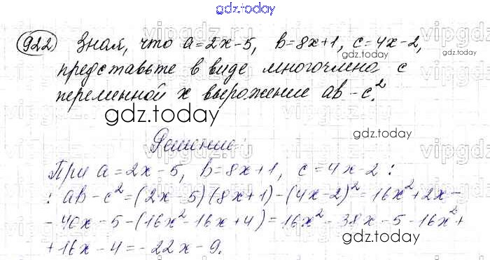 На страницах сайта gdz.today вы найдете учебный и вспомогательный материал, направленный на улучшения знаний школьной программы. ГДЗ - онлайн мир знаний Решение. Упражнения 922 Учебнику по Алгебре для 7 класса Макарычев, Миндюк Просвещение 2015