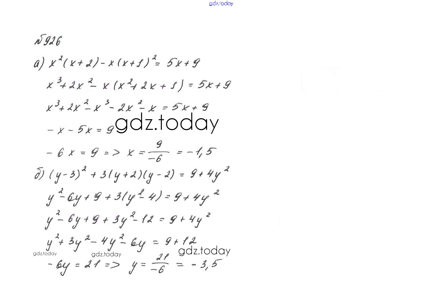 На страницах сайта gdz.today вы найдете учебный и вспомогательный материал, направленный на улучшения знаний школьной программы. ГДЗ - онлайн мир знаний Решение. Упражнения 926 Учебнику по Алгебре для 7 класса Макарычев, Миндюк Просвещение 2015