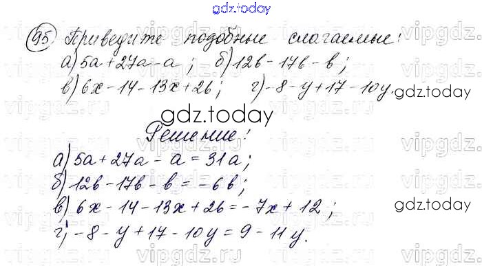 На страницах сайта gdz.today вы найдете учебный и вспомогательный материал, направленный на улучшения знаний школьной программы. ГДЗ - онлайн мир знаний Решение. Упражнения 95 Учебнику по Алгебре для 7 класса Макарычев, Миндюк Просвещение 2015