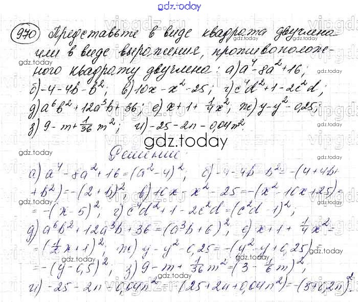 На страницах сайта gdz.today вы найдете учебный и вспомогательный материал, направленный на улучшения знаний школьной программы. ГДЗ - онлайн мир знаний Решение. Упражнения 970 Учебнику по Алгебре для 7 класса Макарычев, Миндюк Просвещение 2015