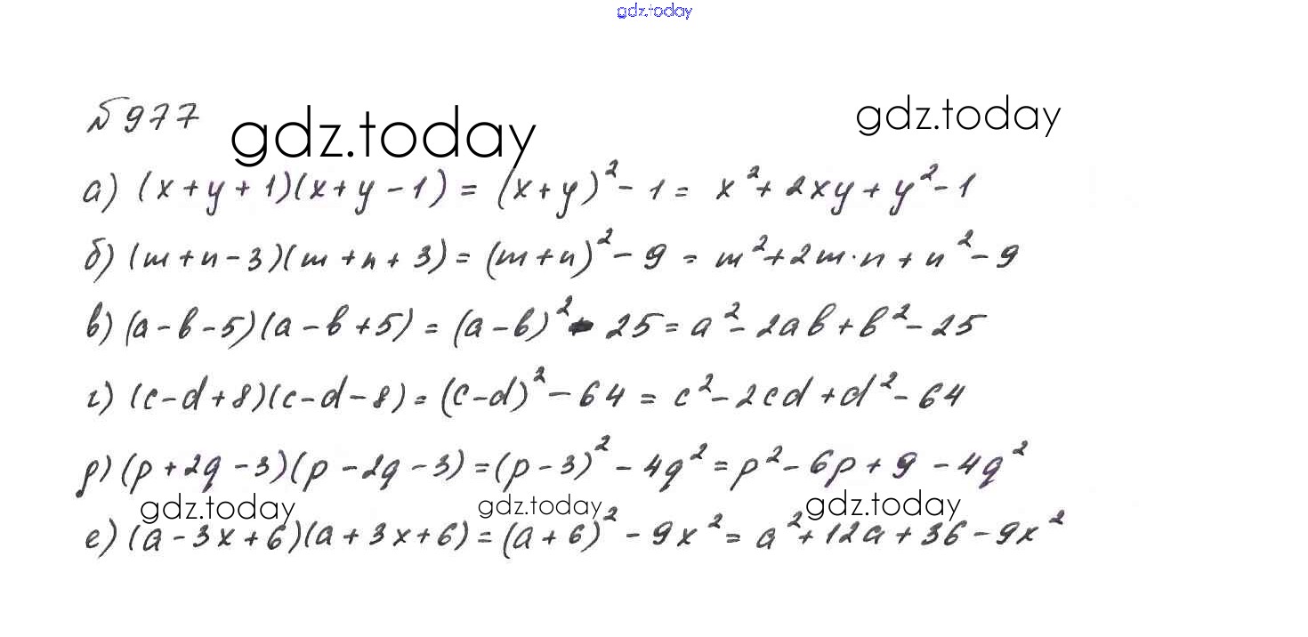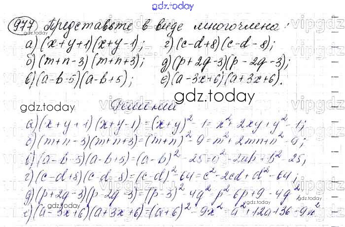 На страницах сайта gdz.today вы найдете учебный и вспомогательный материал, направленный на улучшения знаний школьной программы. ГДЗ - онлайн мир знаний Решение. Упражнения 977 Учебнику по Алгебре для 7 класса Макарычев, Миндюк Просвещение 2015