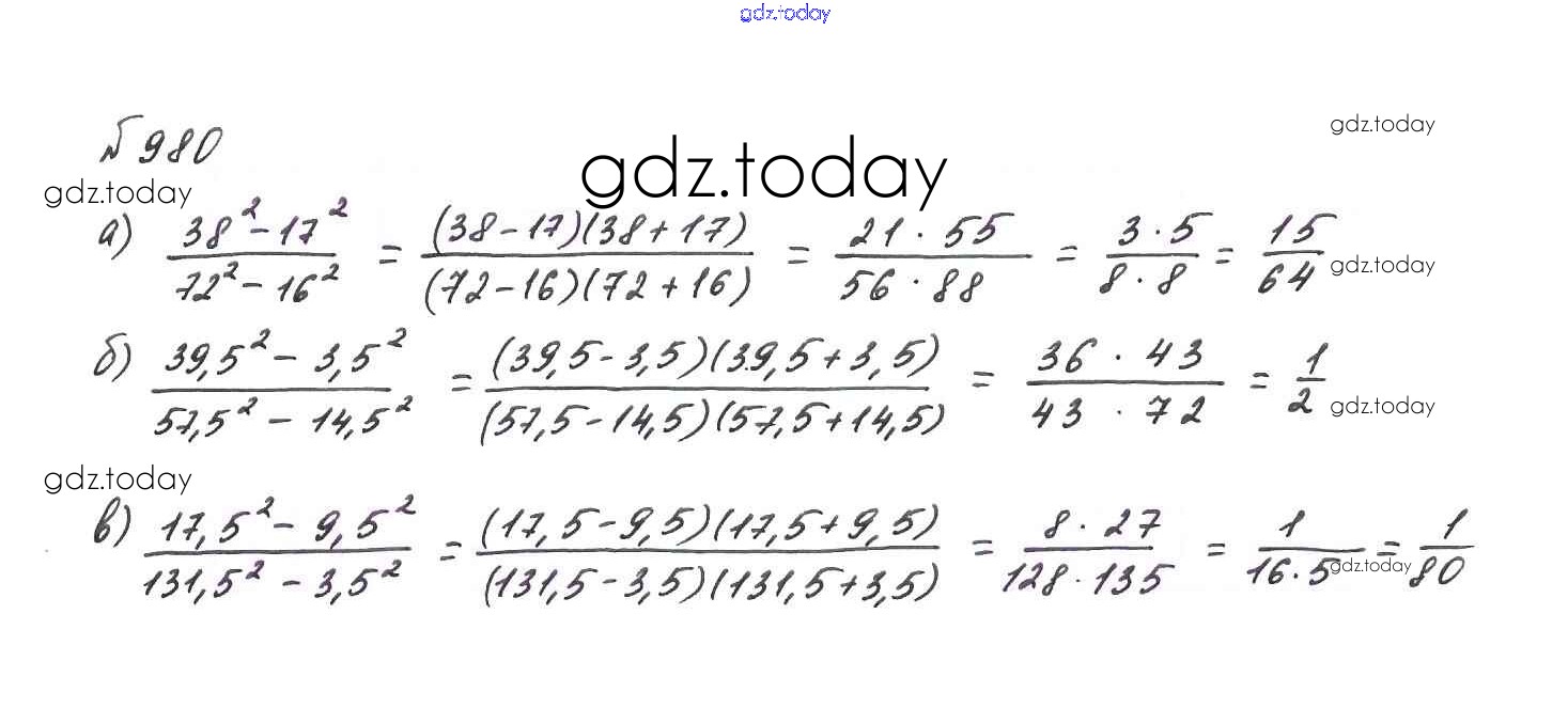На страницах сайта gdz.today вы найдете учебный и вспомогательный материал, направленный на улучшения знаний школьной программы. ГДЗ - онлайн мир знаний Решение. Упражнения 980 Учебнику по Алгебре для 7 класса Макарычев, Миндюк Просвещение 2015