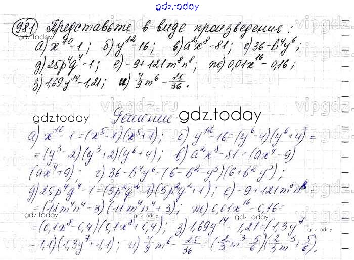 На страницах сайта gdz.today вы найдете учебный и вспомогательный материал, направленный на улучшения знаний школьной программы. ГДЗ - онлайн мир знаний Решение. Упражнения 981 Учебнику по Алгебре для 7 класса Макарычев, Миндюк Просвещение 2015