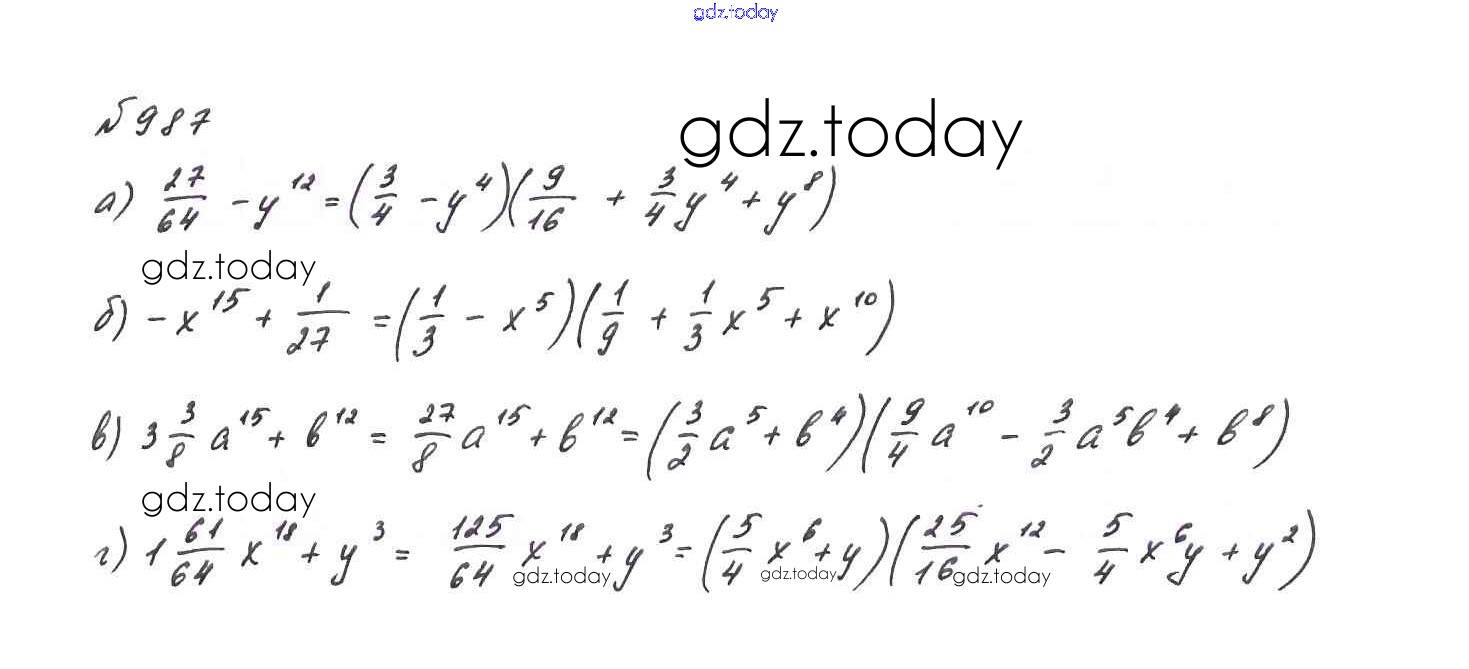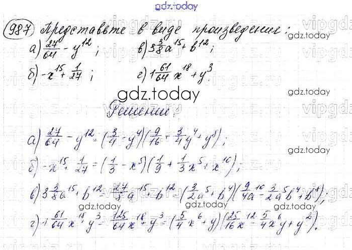 На страницах сайта gdz.today вы найдете учебный и вспомогательный материал, направленный на улучшения знаний школьной программы. ГДЗ - онлайн мир знаний Решение. Упражнения 987 Учебнику по Алгебре для 7 класса Макарычев, Миндюк Просвещение 2015