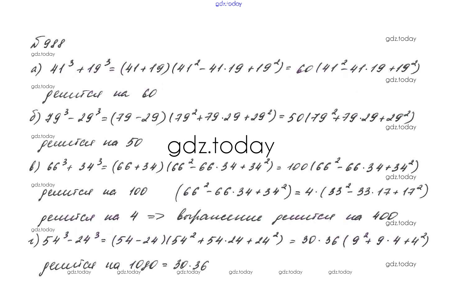На страницах сайта gdz.today вы найдете учебный и вспомогательный материал, направленный на улучшения знаний школьной программы. ГДЗ - онлайн мир знаний Решение. Упражнения 988 Учебнику по Алгебре для 7 класса Макарычев, Миндюк Просвещение 2015