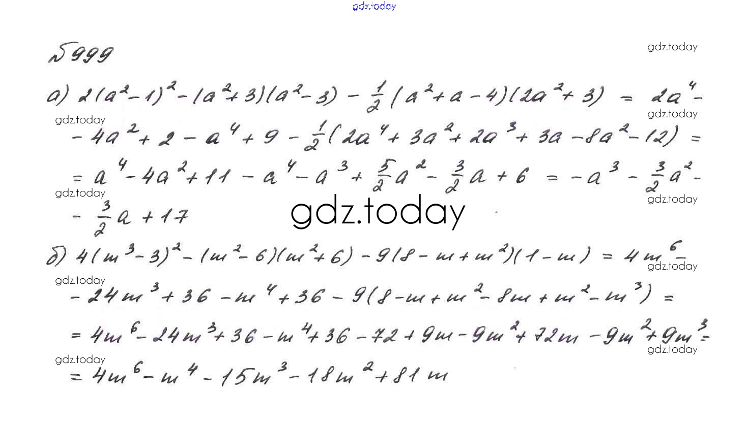 На страницах сайта gdz.today вы найдете учебный и вспомогательный материал, направленный на улучшения знаний школьной программы. ГДЗ - онлайн мир знаний Решение. Упражнения 999 Учебнику по Алгебре для 7 класса Макарычев, Миндюк Просвещение 2015