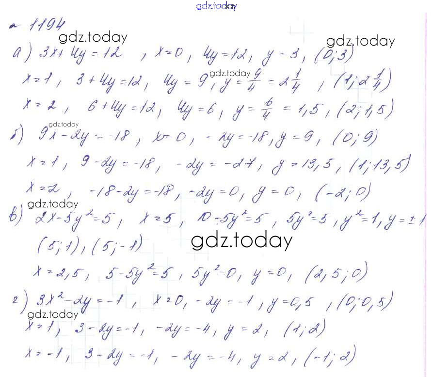 Ответы к Решение к упражнениям 1194 Учебнику по Алгебре для 7 класса Макарычев, Миндюк Углубленный уровень Мнемозина УМК 2013