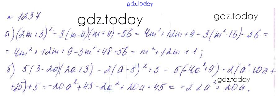 Ответы к Решение к упражнениям 1237 Учебнику по Алгебре для 7 класса Макарычев, Миндюк Углубленный уровень Мнемозина УМК 2013