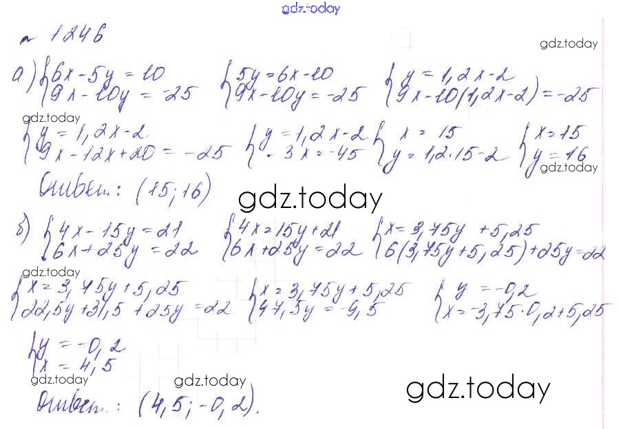 Ответы к Решение к упражнениям 1246 Учебнику по Алгебре для 7 класса Макарычев, Миндюк Углубленный уровень Мнемозина УМК 2013