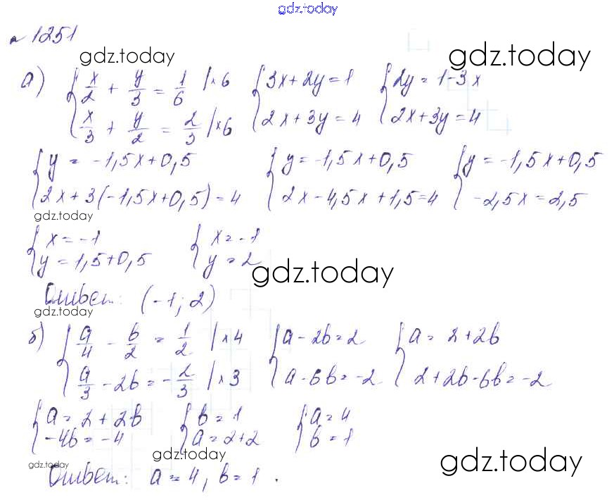 Ответы к Решение к упражнениям 1251 Учебнику по Алгебре для 7 класса Макарычев, Миндюк Углубленный уровень Мнемозина УМК 2013