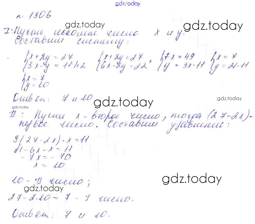 Ответы к Решение к упражнениям 1306 Учебнику по Алгебре для 7 класса Макарычев, Миндюк Углубленный уровень Мнемозина УМК 2013