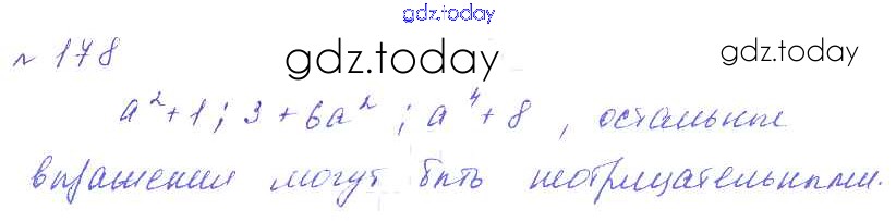 На страницах сайта gdz.today вы найдете учебный и вспомогательный материал, направленный на улучшения знаний школьной программы. ГДЗ - онлайн мир знаний Решение к упражнениям 178 Учебнику по Алгебре для 7 класса Макарычев, Миндюк Углубленный уровень Мнемозина УМК 2013