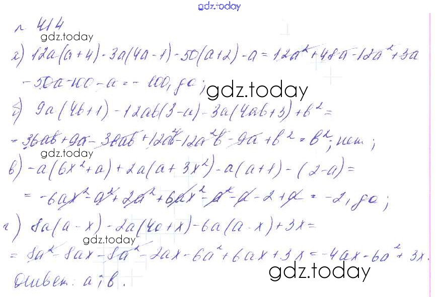 На страницах сайта gdz.today вы найдете учебный и вспомогательный материал, направленный на улучшения знаний школьной программы. ГДЗ - онлайн мир знаний Решение к упражнениям 414 Учебнику по Алгебре для 7 класса Макарычев, Миндюк Углубленный уровень Мнемозина УМК 2013