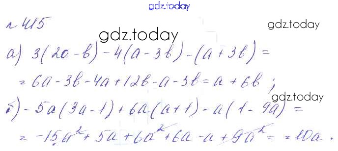 На страницах сайта gdz.today вы найдете учебный и вспомогательный материал, направленный на улучшения знаний школьной программы. ГДЗ - онлайн мир знаний Решение к упражнениям 415 Учебнику по Алгебре для 7 класса Макарычев, Миндюк Углубленный уровень Мнемозина УМК 2013
