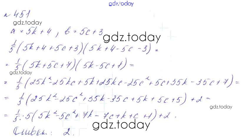 На страницах сайта gdz.today вы найдете учебный и вспомогательный материал, направленный на улучшения знаний школьной программы. ГДЗ - онлайн мир знаний Решение к упражнениям 451 Учебнику по Алгебре для 7 класса Макарычев, Миндюк Углубленный уровень Мнемозина УМК 2013