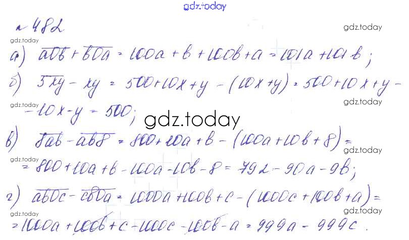 Ответы к Решение к упражнениям 482 Учебнику по Алгебре для 7 класса Макарычев, Миндюк Углубленный уровень Мнемозина УМК 2013