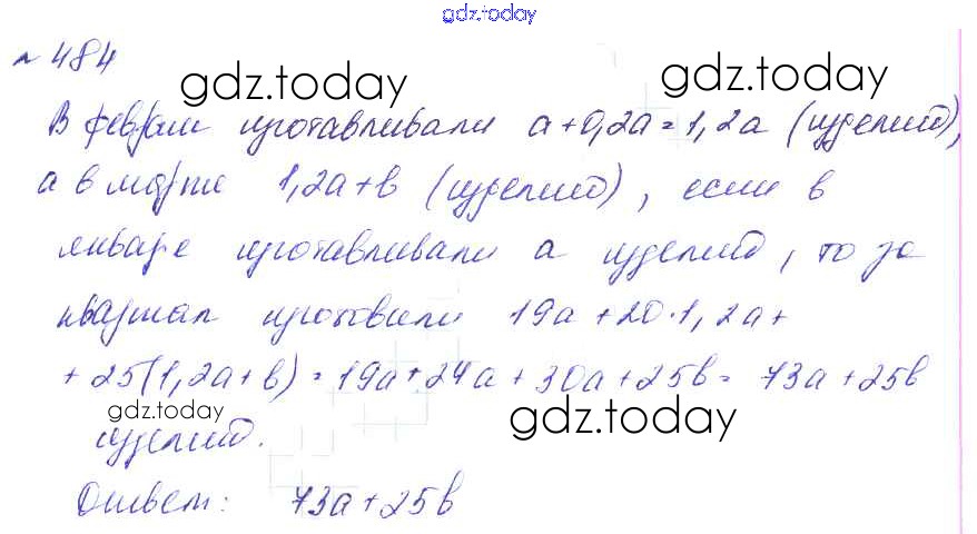 Ответы к Решение к упражнениям 484 Учебнику по Алгебре для 7 класса Макарычев, Миндюк Углубленный уровень Мнемозина УМК 2013