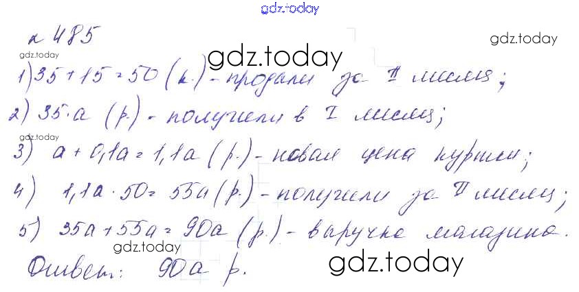 Ответы к Решение к упражнениям 485 Учебнику по Алгебре для 7 класса Макарычев, Миндюк Углубленный уровень Мнемозина УМК 2013