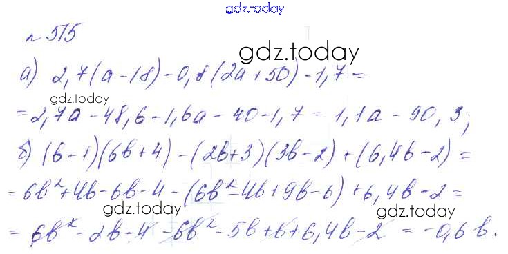 На страницах сайта gdz.today вы найдете учебный и вспомогательный материал, направленный на улучшения знаний школьной программы. ГДЗ - онлайн мир знаний Решение к упражнениям 515 Учебнику по Алгебре для 7 класса Макарычев, Миндюк Углубленный уровень Мнемозина УМК 2013