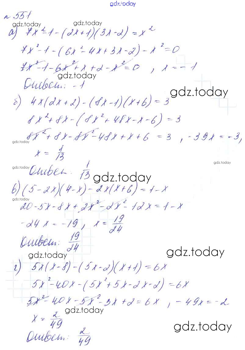 Ответы к Решение к упражнениям 551 Учебнику по Алгебре для 7 класса Макарычев, Миндюк Углубленный уровень Мнемозина УМК 2013