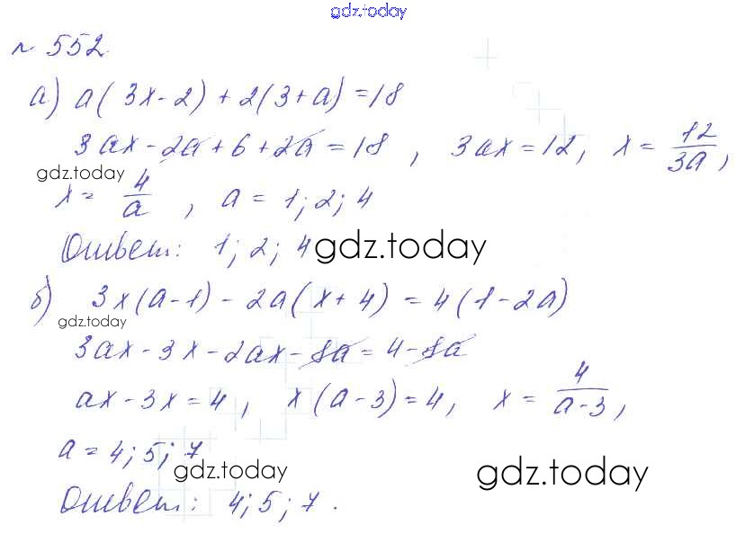 Ответы к Решение к упражнениям 552 Учебнику по Алгебре для 7 класса Макарычев, Миндюк Углубленный уровень Мнемозина УМК 2013
