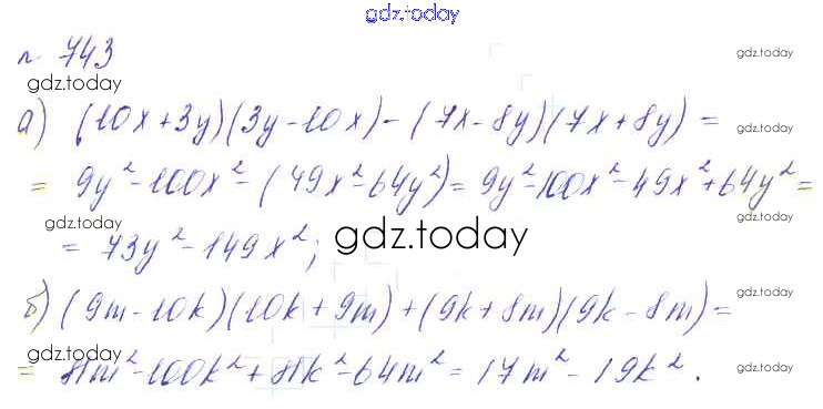 На страницах сайта gdz.today вы найдете учебный и вспомогательный материал, направленный на улучшения знаний школьной программы. ГДЗ - онлайн мир знаний Решение к упражнениям 743 Учебнику по Алгебре для 7 класса Макарычев, Миндюк Углубленный уровень Мнемозина УМК 2013