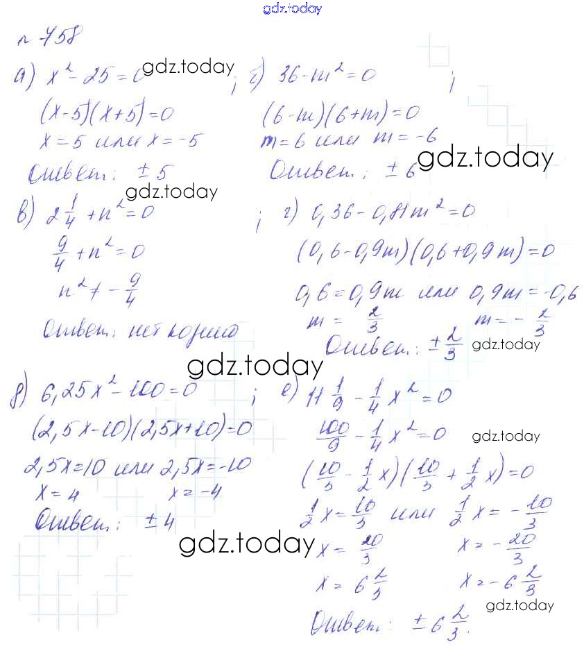 Ответы к Решение к упражнениям 758 Учебнику по Алгебре для 7 класса Макарычев, Миндюк Углубленный уровень Мнемозина УМК 2013