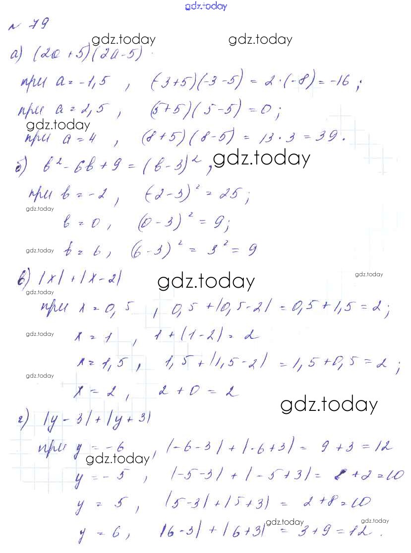 На страницах сайта gdz.today вы найдете учебный и вспомогательный материал, направленный на улучшения знаний школьной программы. ГДЗ - онлайн мир знаний Решение к упражнениям 79 Учебнику по Алгебре для 7 класса Макарычев, Миндюк Углубленный уровень Мнемозина УМК 2013