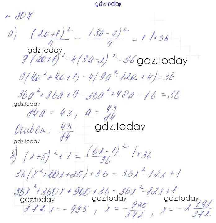 Ответы к Решение к упражнениям 807 Учебнику по Алгебре для 7 класса Макарычев, Миндюк Углубленный уровень Мнемозина УМК 2013