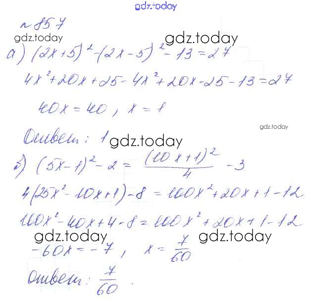 Ответы к Решение к упражнениям 857 Учебнику по Алгебре для 7 класса Макарычев, Миндюк Углубленный уровень Мнемозина УМК 2013
