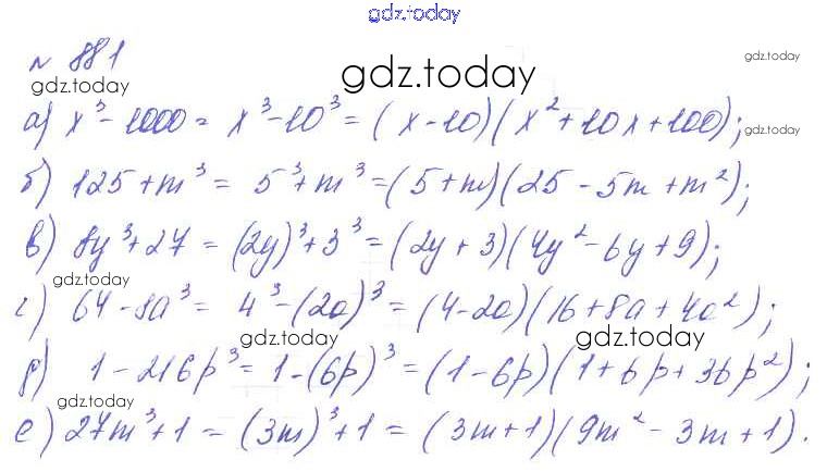 На страницах сайта gdz.today вы найдете учебный и вспомогательный материал, направленный на улучшения знаний школьной программы. ГДЗ - онлайн мир знаний Решение к упражнениям 881 Учебнику по Алгебре для 7 класса Макарычев, Миндюк Углубленный уровень Мнемозина УМК 2013